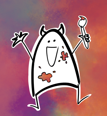 This is Morty! The first original character created by Rachael. He started from an upside down smiley face with fangs that Rachael and her family would draw for each other.